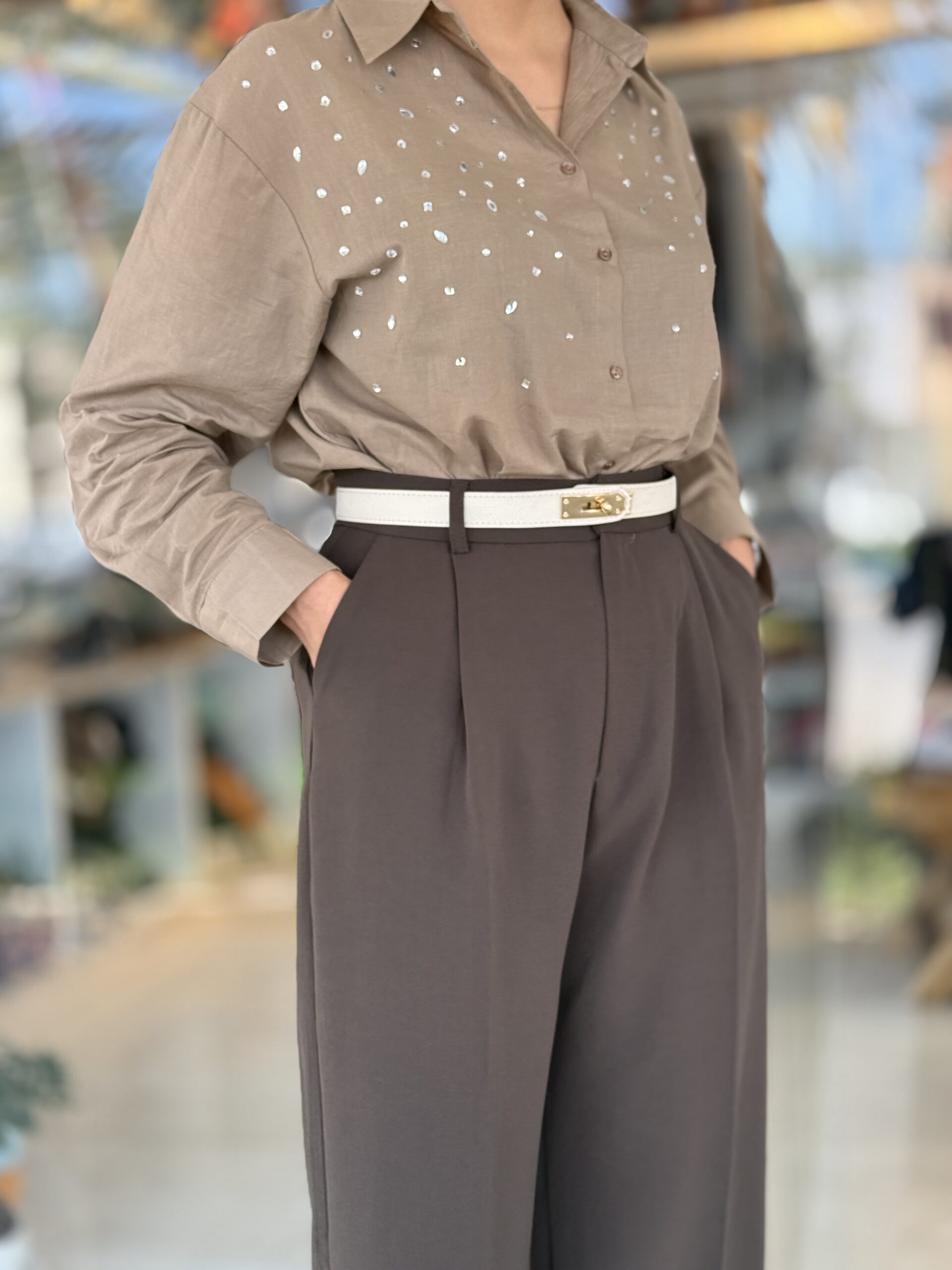 شلوار تک رنگ قهوه ای